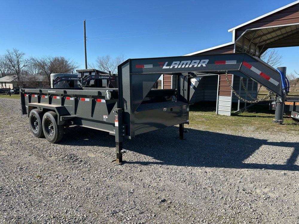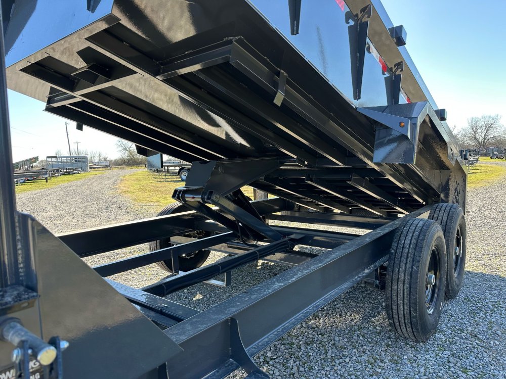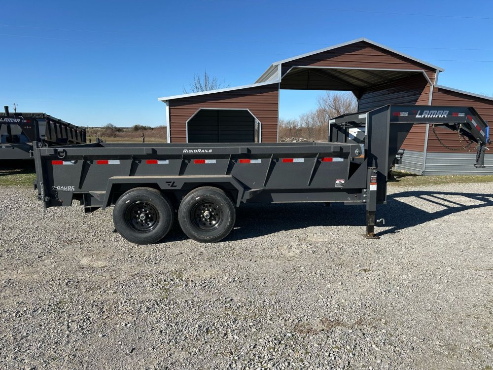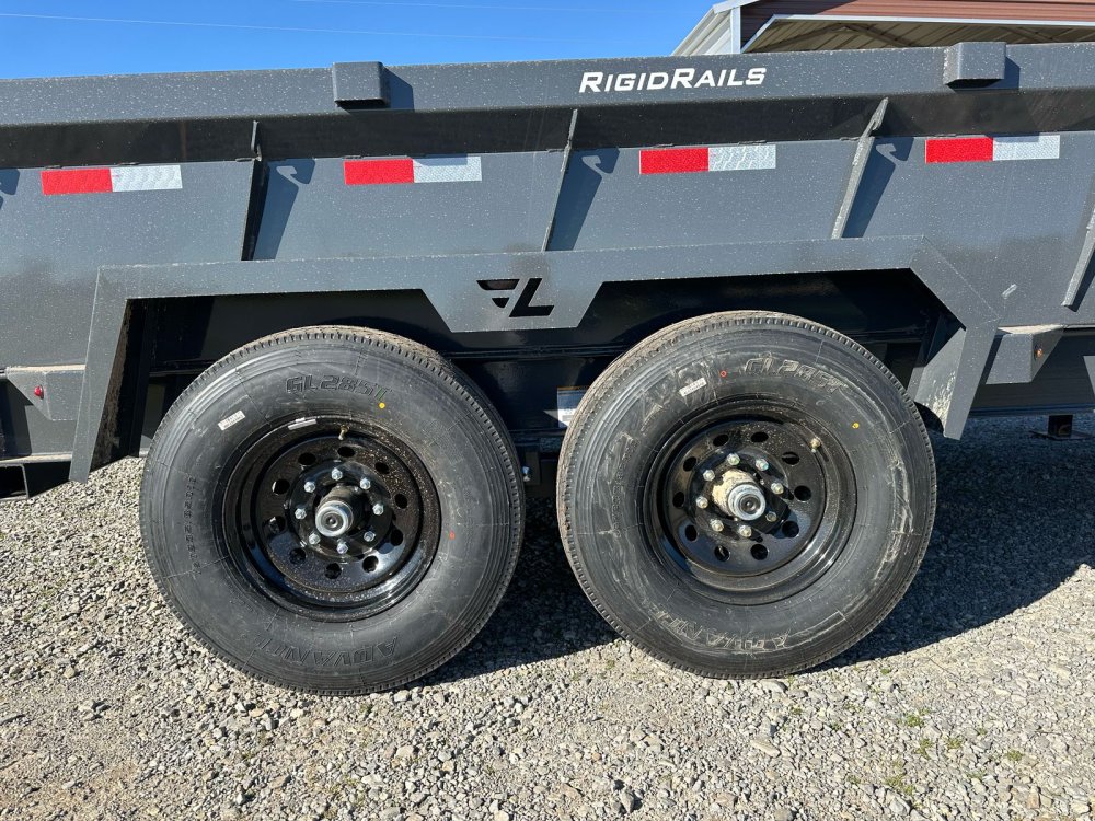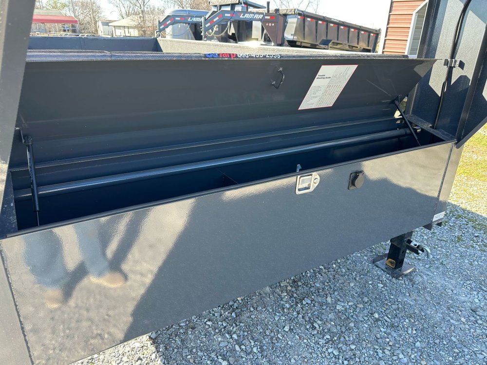 7K EZ LUBE ELECTRIC BRAKE SPRING AXLE(S). 235/85 R16 (G) 14PLY TIRE WITH BLACK WHEEL. 235/85 R16 (G) 14PLY TIRE WITH BLACK WHEEL. 2-5/16" 30K COUPLER. FRONT TOOL BOX. SPREADER GATE. PAIR OF HEAVY DUTY SLIDE IN RAMPS. FENDERS. 24" WELD-ON SIDES. STANDARD STAKE POCKETS. FOUR WELD ON D-RINGS. 8" 13 LB I-BEAM FRAME. 12" CENTER-TO-CENTER CROSSMEMBERS. 3 WAY 12V DC PUMP. DEFAULT REMOTE. MESH TARP WITH PULL BAR. WIRING. LED PACKAGE. 12V DEEP CYCLE BATTERY KIT. 5 AMP TRICKLE CHARGER. DECAL PACKAGE. LAMAR GRAY POWDER COAT. 14000 GVWR